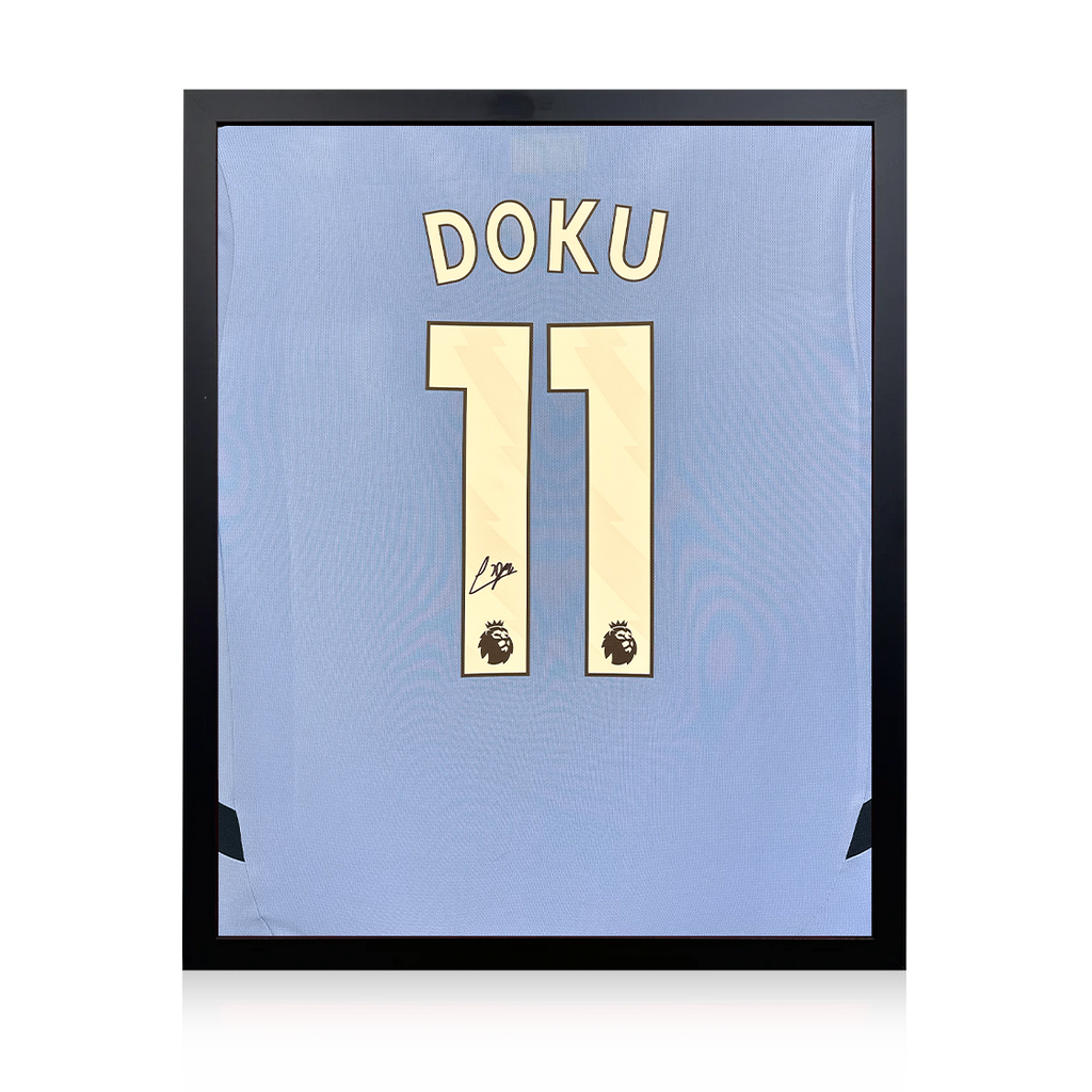 Beautifully presented Compact Frame with signed Manchester City shirt from Jérémy Doku. This item was signed at an exclusive Fan Cave signing with Jérémy in August 2024. The frame measures approximately 520mm x 420mm. This item...