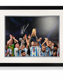 Mounted photo in a frame, signed by Argentinian defender and World Cup Winner;