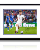 Framed mounted photo signed by Kalvin Phillips. He made his England debut on 08/09/20 when he started against rivals Wales in a 3-0 victory. This item measures approximately 530mm x 430mm