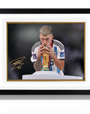 Lisandro Martínez signed 16x12 image in a Deluxe Mount Frame. This product was signed at a private signing with Lisandro with The Fan Cave. This item is accompanied with an certificate of authenticity from The Fan Cave.
