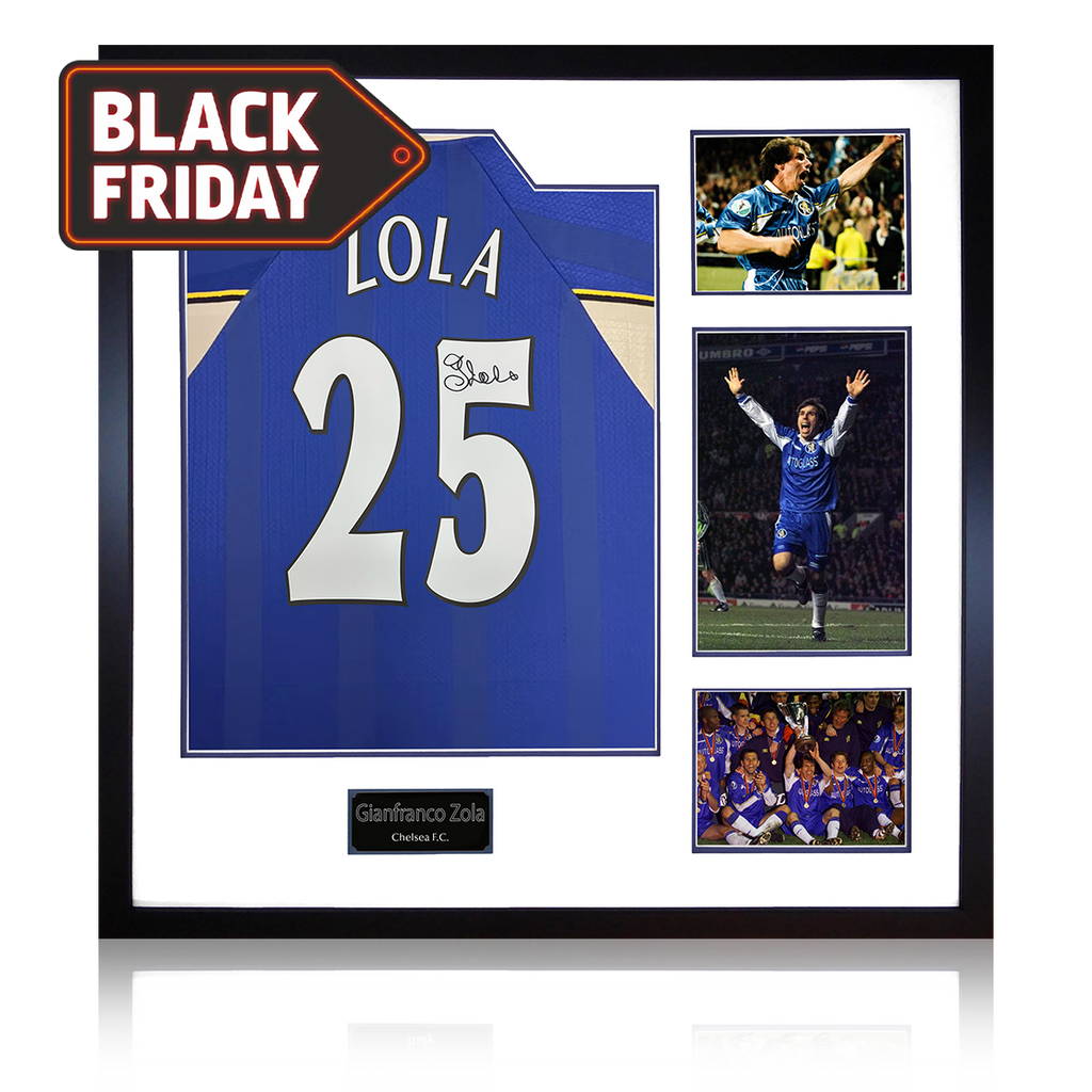 Beautifully presented Elite Frame with signed Chelsea shirt (Fan Style Premier League Numbers) by Gianfranco Zola. This item was signed at an exclusive Fan Cave signing with Gianfranco Zola on the 02/11/25. The frame measures a...