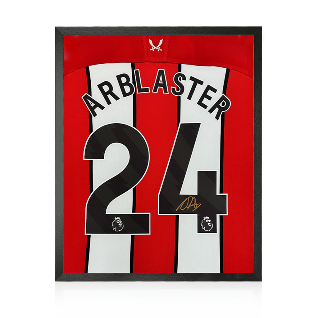 Wooden framed SUFC display containing a shirt signed by midfielder Ollie Arblaster. These are Sheffield United official shirts by signed at a private signing exclusively with The Fan Cave in 2024!