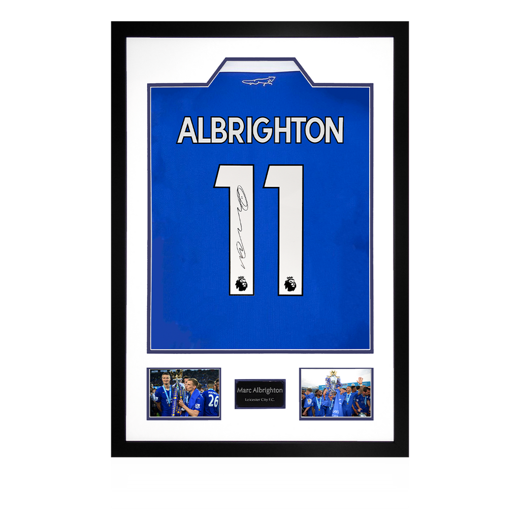 Beautifully presented Premium Frame with signed Leicester City shirt from Marc Albrighton. This item was signed at an exclusive Fan Cave signing with Marc on 18/03/23. The frame measures approximately 690mm x 480mm. This item i...
