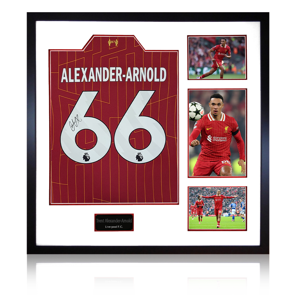 Beautifully presented Premium Frame with signed Liverpool 24/25 shirt from Trent Alexander-Arnold. The autograph includes an official AFTAL Authentication hologram for authenticity purposes. This item measures approximately 690...