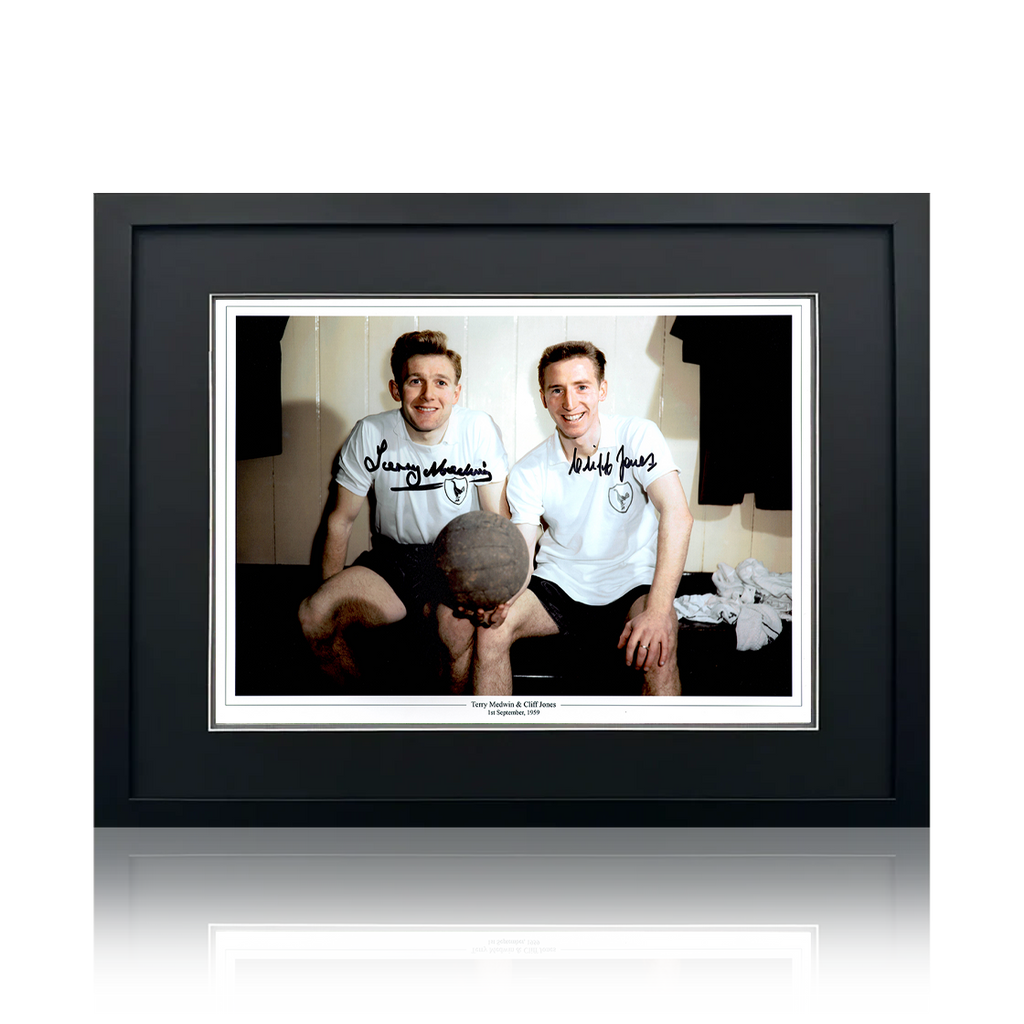 A 16x12 image signed by Terry Medwin & Cliff Jones in a compact frame. This item is accompanied with an certificate of authenticity from The Fan Cave.