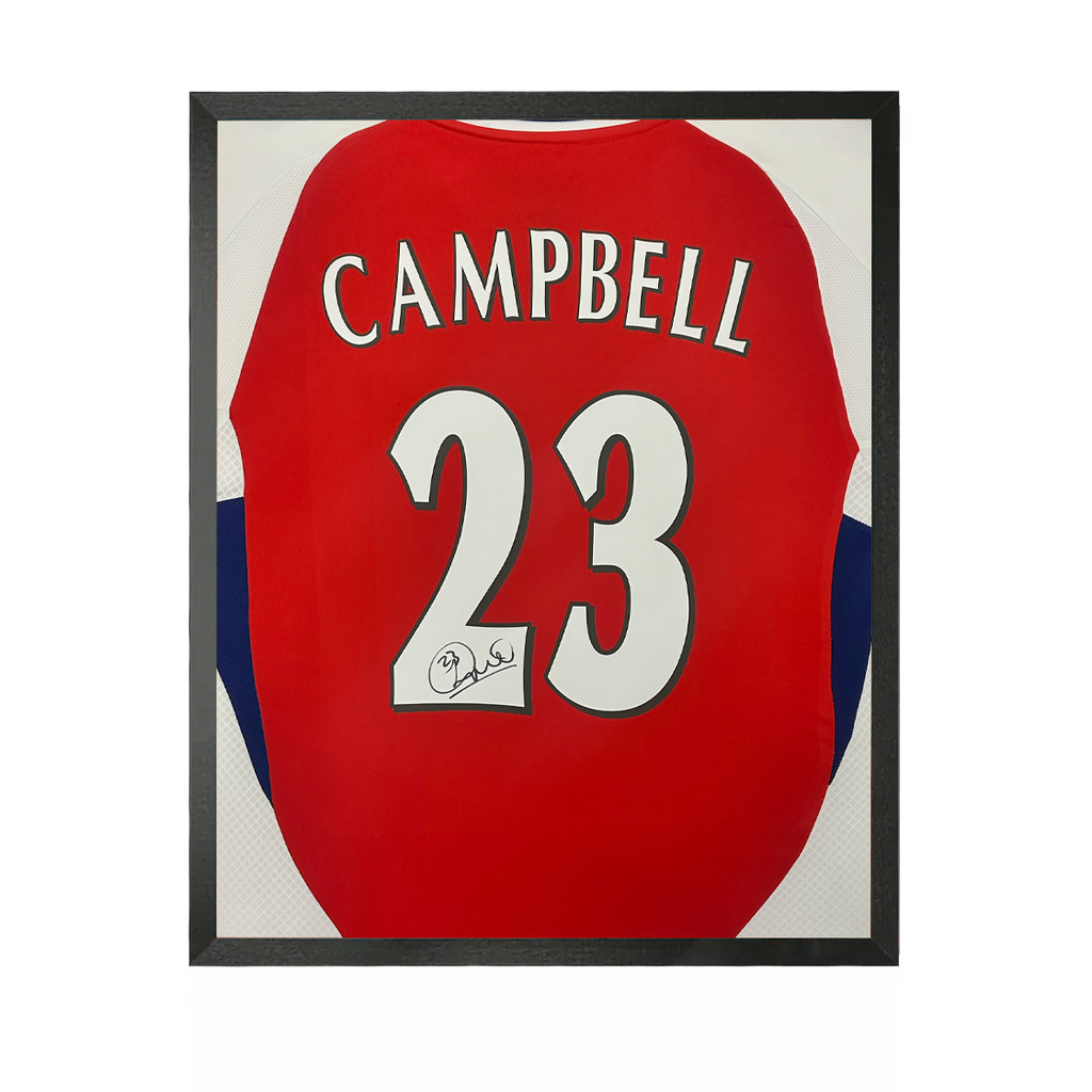 A signed Arsenal shirt by Sol Campbell in a Compact Frame. The item was signed at a private signing on the 06/03/25. This item is accompanied with an certificate of authenticity from The Fan Cave.