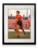 A signed 16x12 mounted image in a frame of Dutch legend Johan Cruyff. As a Dutch international, Cruyff played 48 matches, scoring 33 goals. The national team never lost a match in which Cruyff scored.