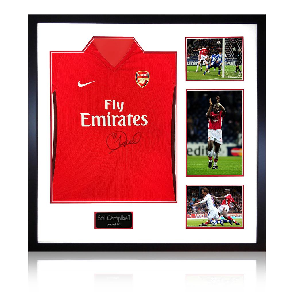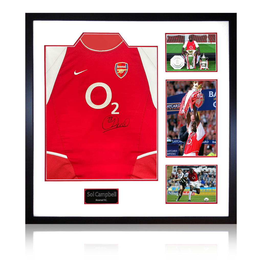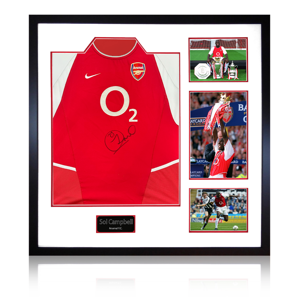 A signed Arsenal authentic 2002/04 home shirt by Sol Campbell in a Elite Frame. The item was signed at a private signing on the 06/03/25. This item is accompanied with an certificate of authenticity from The Fan Cav...