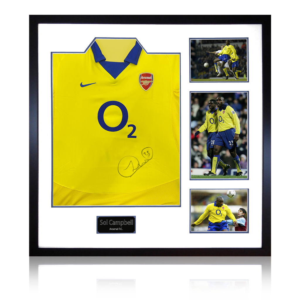 A signed Arsenal authentic 2003/05 away shirt by Sol Campbell in a Elite Frame. The item was signed at a private signing on the 06/03/25. This item is accompanied with an certificate of authenticity from The Fan Cav...