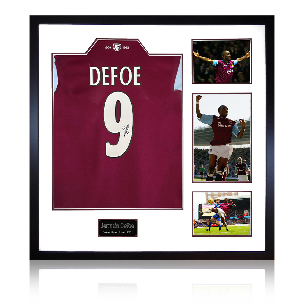 Wooden framed West Ham display containing a shirt signed by forward, Jermain Defoe. These are West Ham official shirts. The items were signed at a private signing exclusively with The Fan Cave on 11/05/25! This item comes with ...