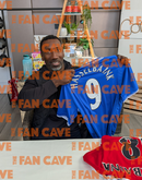 A signed Chelsea shirt by Jimmy Floyd Hasselbaink. This item was signed at an private Fan Cave signing with Jimmy on the 3rd December, 2025. This item measures approximately 750mm x 550mm. This item is accompanied with an certificate of authenticity from The Fan Cave.