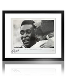 One of a limited number of 100 displays from the 1970 World Cup final in Mexico. This mounted photo display in a wooden frame has been signed by Brazilian icon and football legend; Pele.