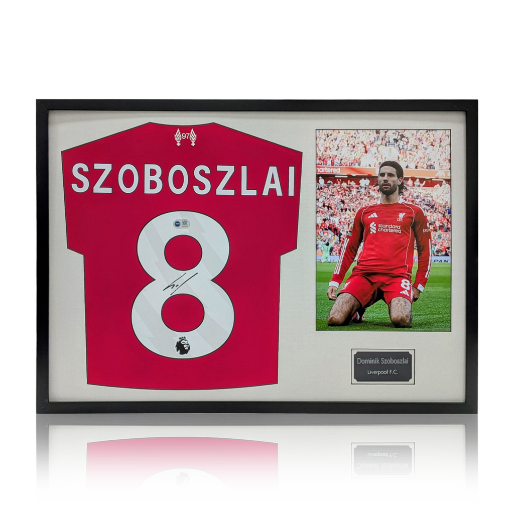 Beautifully presented Classic Frame with signed Liverpool 25/26 shirt from Dominik Szoboszlai. The autograph includes an official ACG Authentication hologram for authenticity purposes. This item measures approximately 750mm x 5...