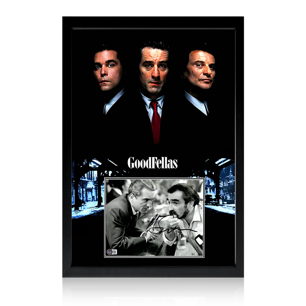 Wonderfully presented framed display of Martin Scorsese the director of Goodfellas. This display containing a signed photo of Martin Scorsese, has been mounted in a print of the poster from the movie and would make ...