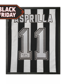 A signed Newcastle United shirt by Faustino Asprilla. This item was signed at an private Fan Cave signing with Faustino on the 19th September, 2025. This item measures approximately 550mm x 450mm. This item is accompanied with an certificate of authenticity from The Fan Cave.