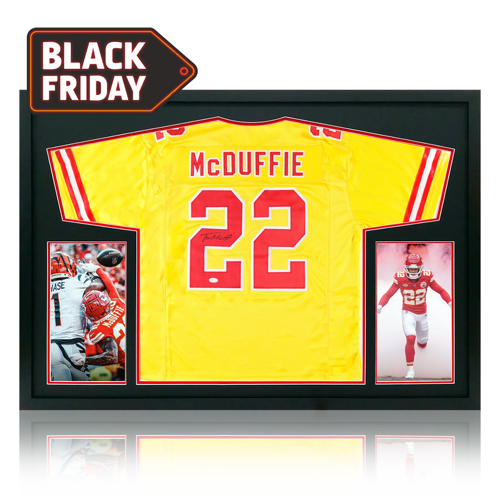 Hand-signed by Trent McDuffie. The autograph includes an official James Spence Authentication (JSA) hologram and matching COA for authenticity purposes. The signing of this item was witnessed by JSA. The frame measures approxim...
