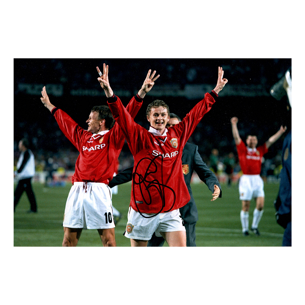 A signed 12x8 of Ole Gunnar Solskjaer. This item is accompanied with an certificate of authenticity from The Fan Cave.