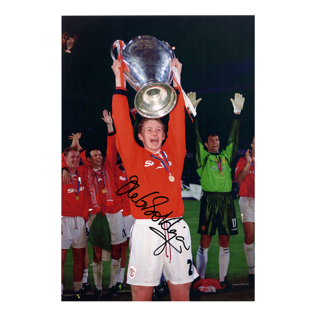 A signed 12x8 of Ole Gunnar Solskjaer. This item is accompanied with an certificate of authenticity from The Fan Cave.