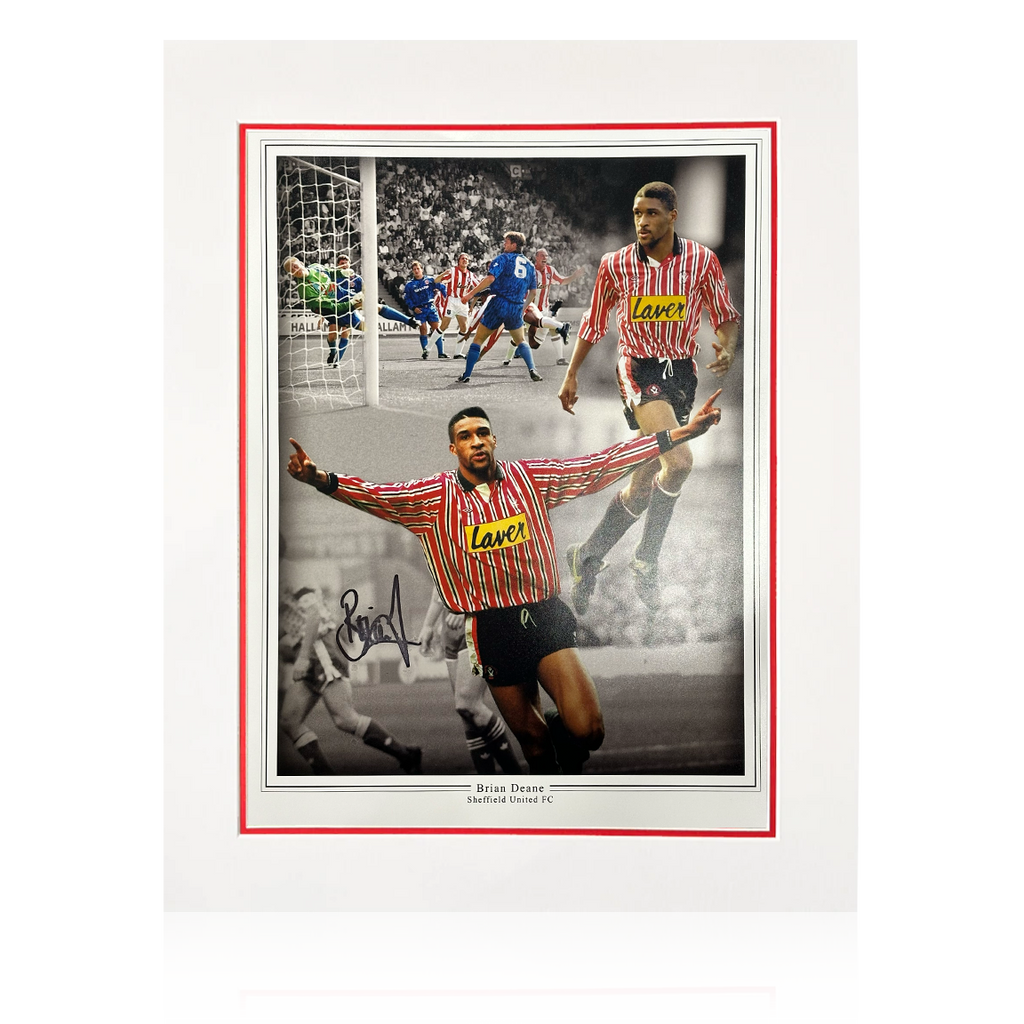 Brian Deane signed Sheffield United mount. Please note the signature is smudged slightly.