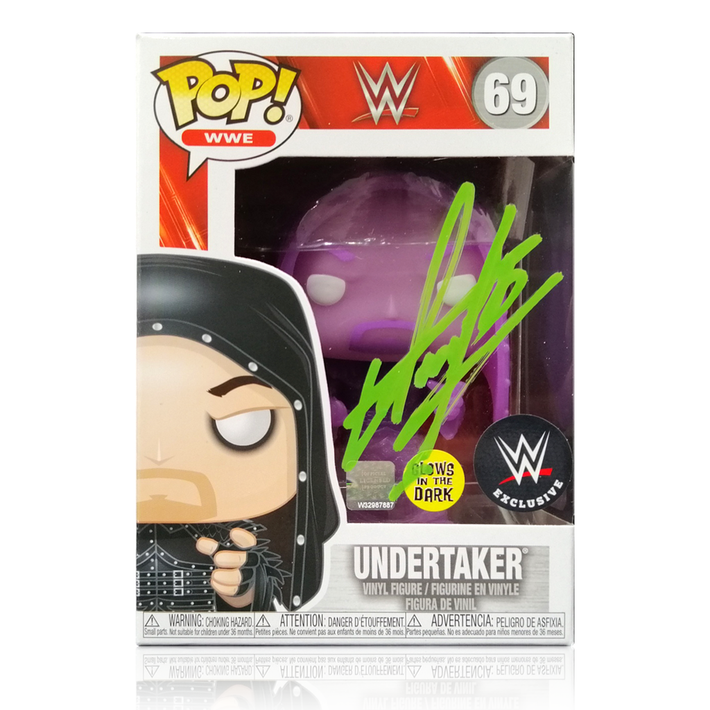 Wrestling Funko Pop signed on the box window by Mark Calaway (The Undertaker). The Undertaker is a former WWE professional wrestler and regarded as one of the most iconic characters in modern wrestling. This item comes wit...