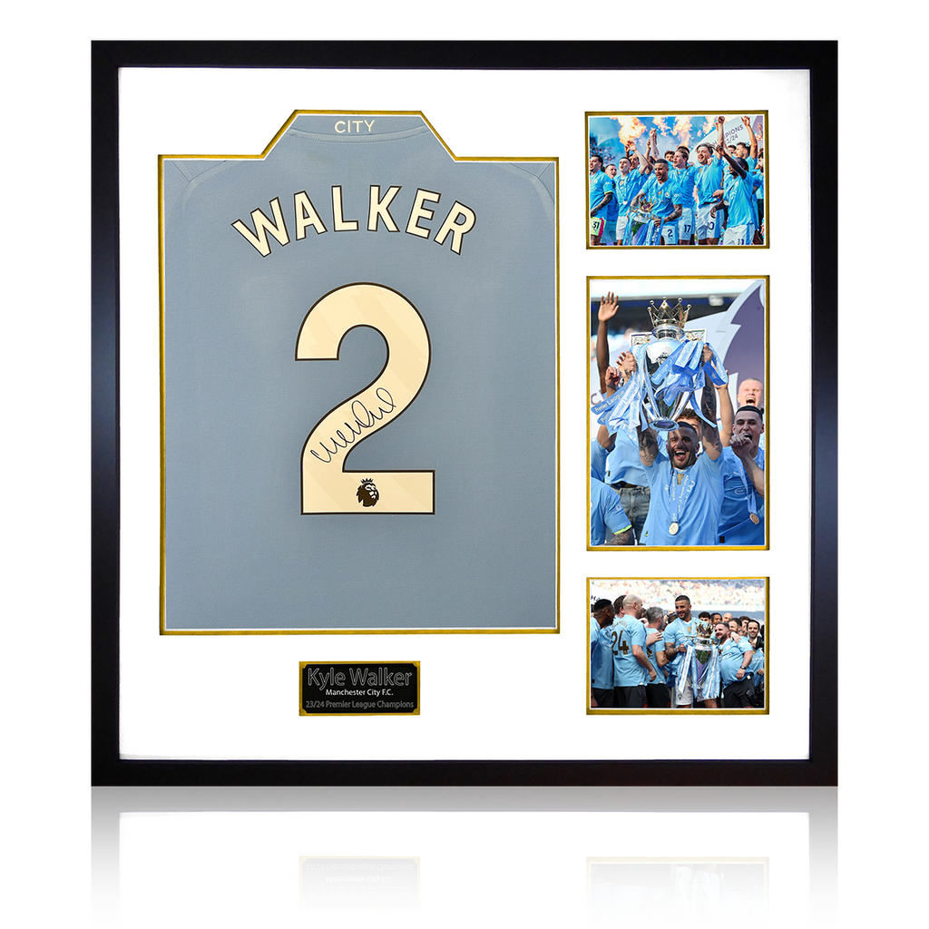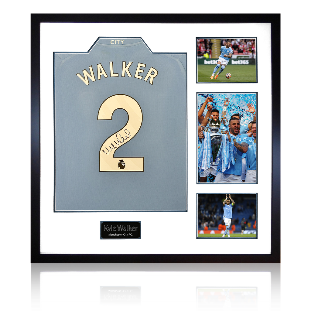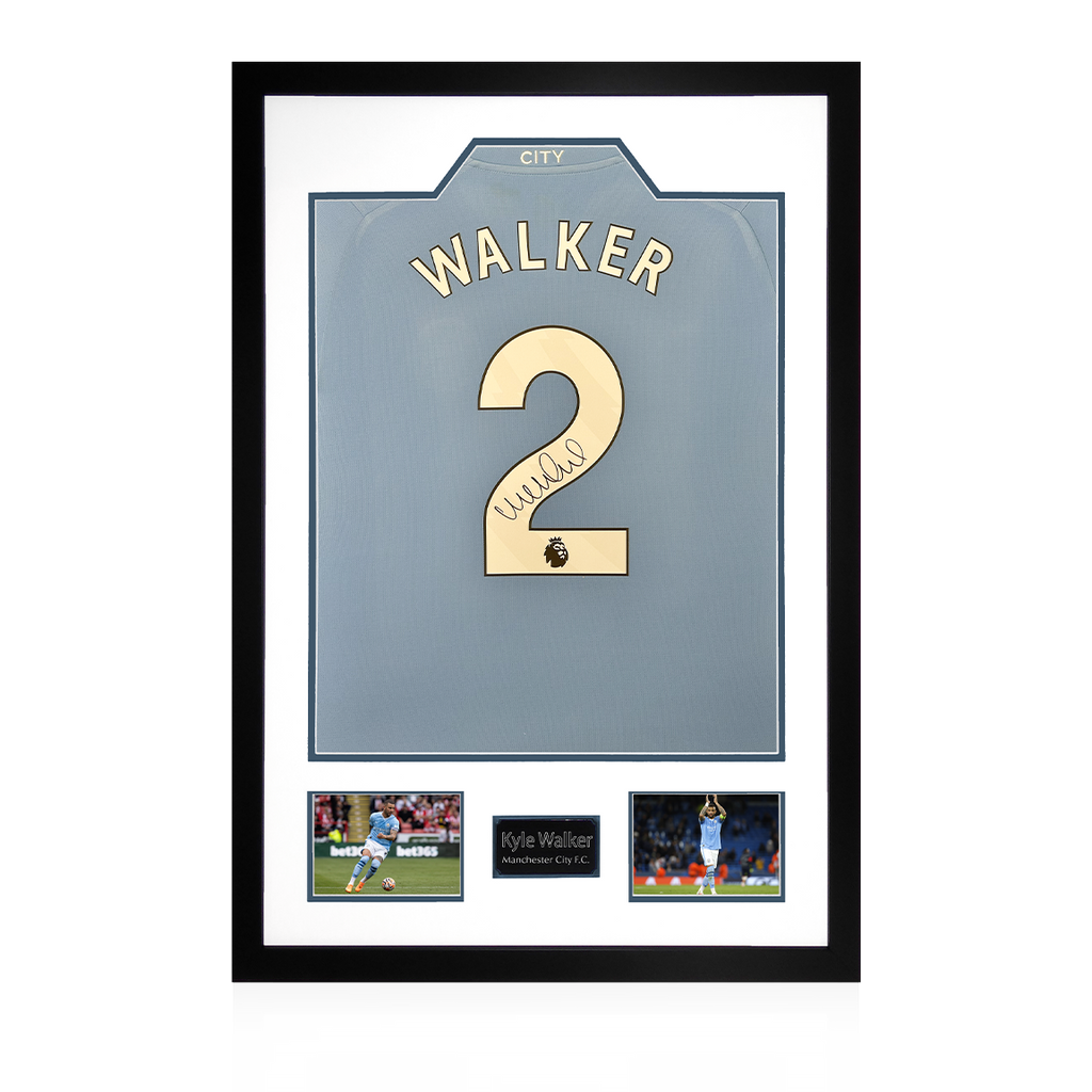 A 23/24 Manchester City signed framed jersey from Kyle Walker.