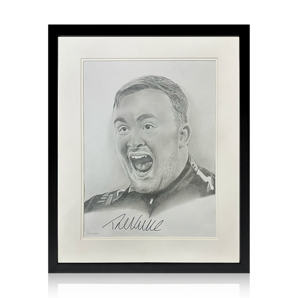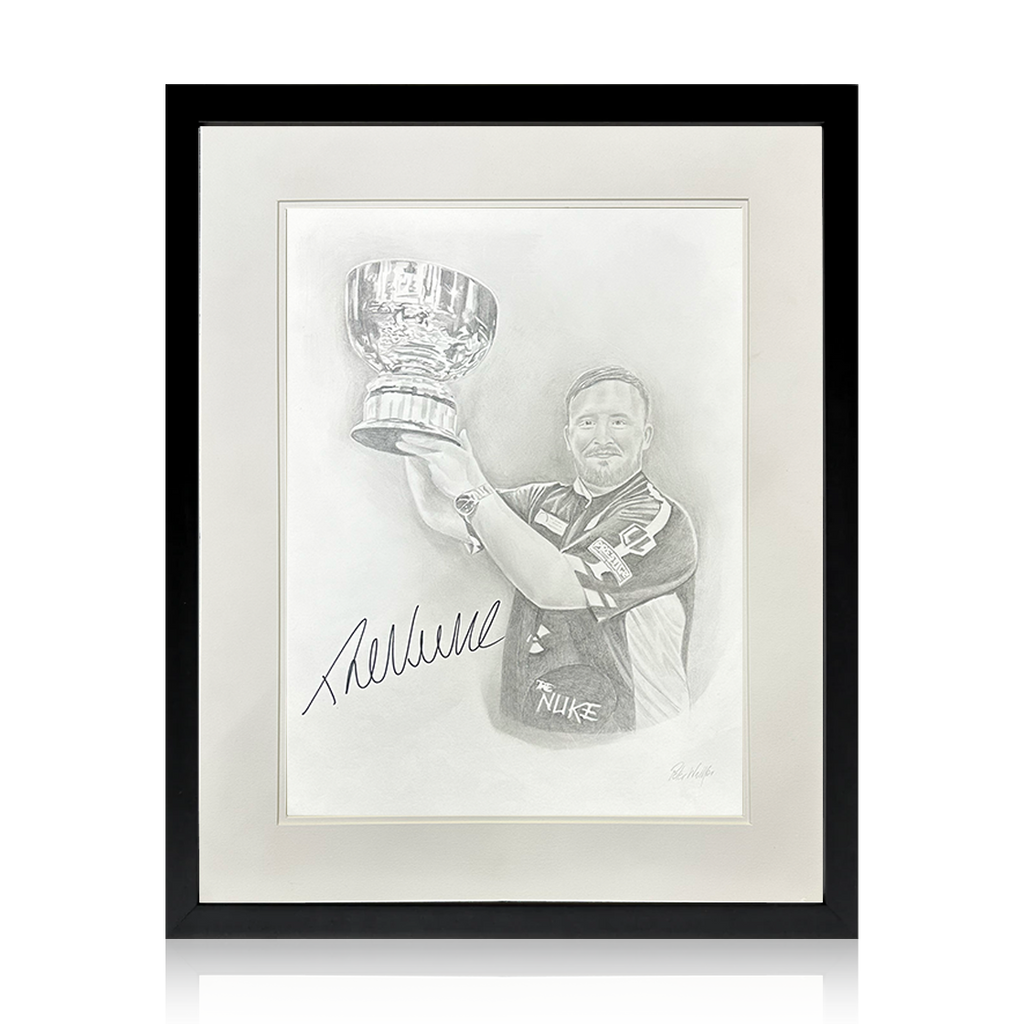 A signed unique Luke Littler sketched image in a Deluxe Mount Frame. This item is accompanied with an certificate of authenticity from The Fan Cave.