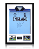 2 photo shirt display signed by Jos Buttler. He took part in the 2019 Cricket World Cup with England as vice captain, winning in the final against New Zealand while also scoring 59 runs.