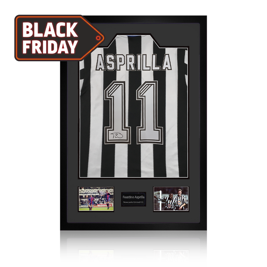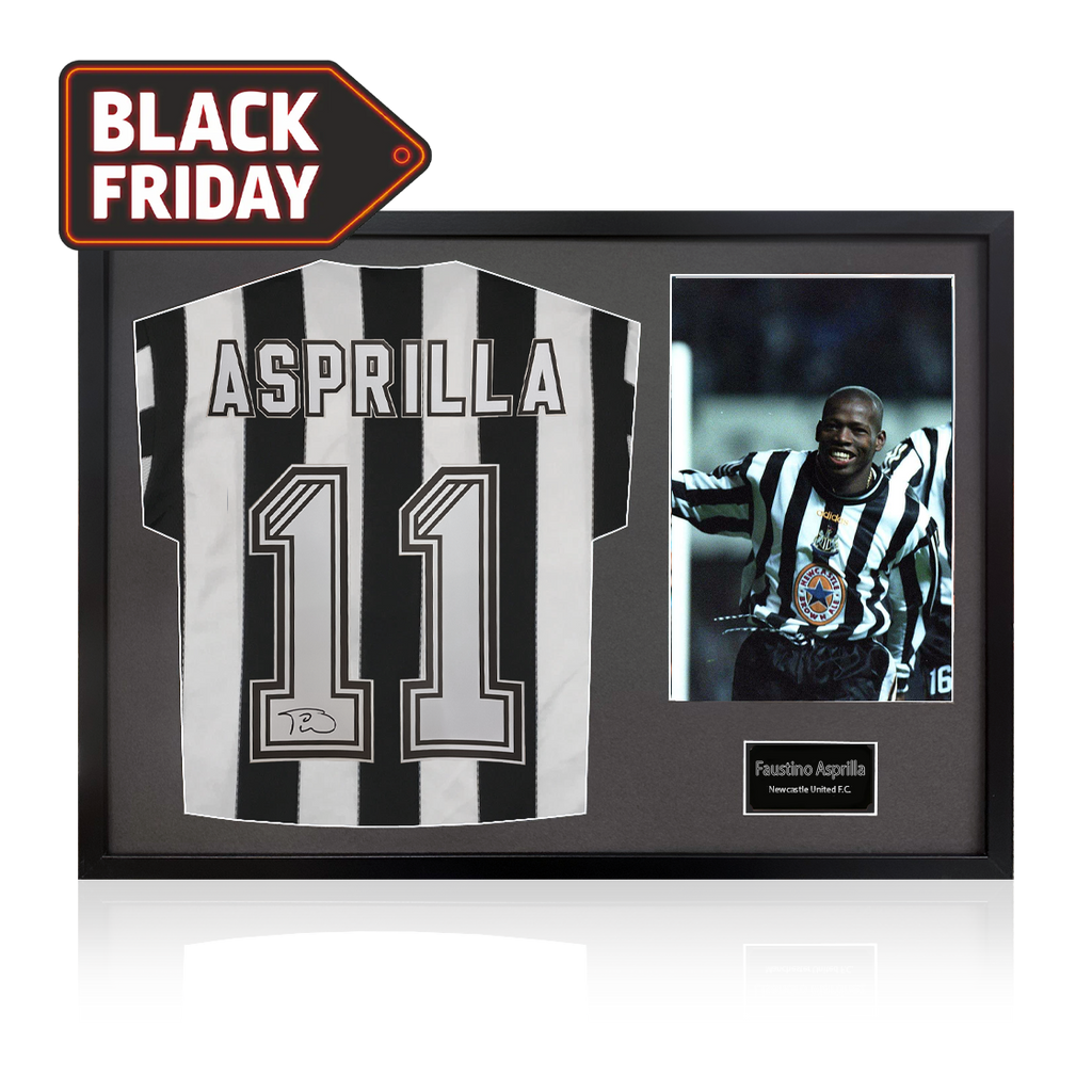 A signed Newcastle United shirt by Faustino Asprilla. This item was signed at an private Fan Cave signing with Faustino on the 19th September, 2025. This item measures approximately 820mm x 820mm. This item is accompanied with ...