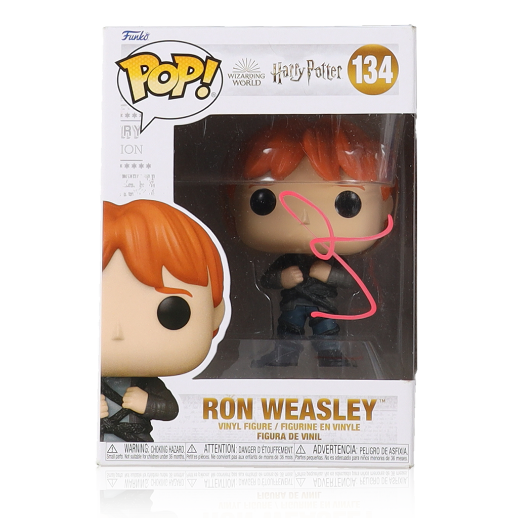 Ron Weasley Funko Pop signed on the box window by Rupert Grint who portrays Harry Potter's best friend Ron Weasley in the film series. The autograph includes an official Beckett Authentication Services serially numbered h...