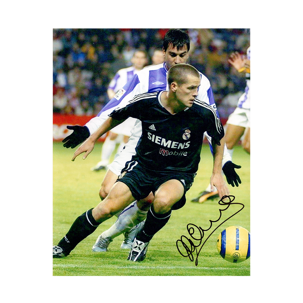 A signed Real Madrid 10x8 image of Michael Owen. This item is accompanied with an certificate of authenticity from The Fan Cave.