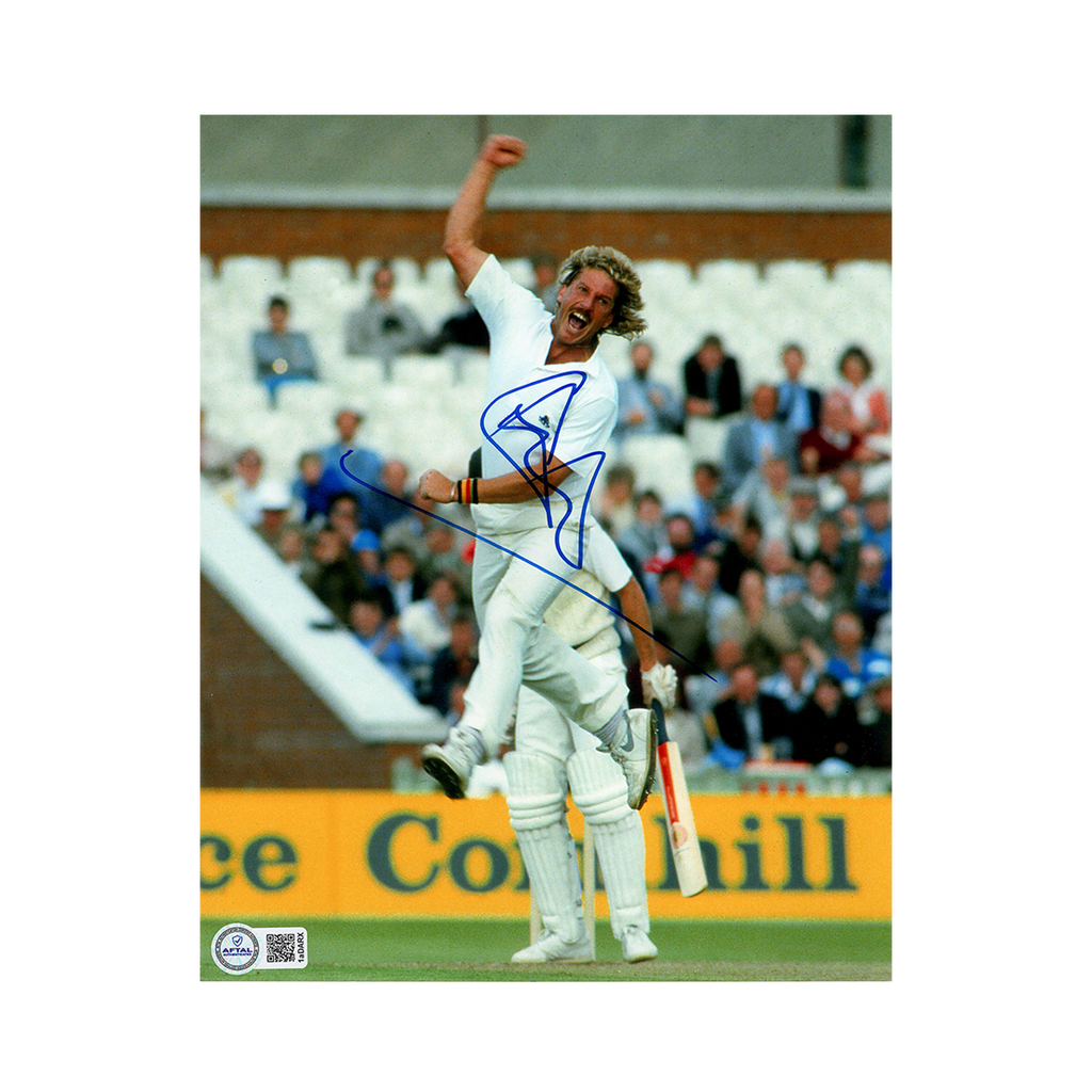 A signed 12x8 of Ian Botham. This item is accompanied with an certificate of authenticity from The Fan Cave.